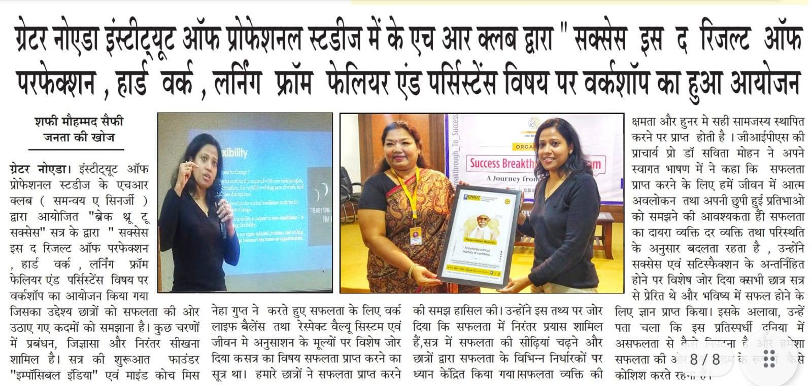 I happened to be one of the fortunate few, to have been a part of the counselling session,conducted by , Mrs Neha Gupta ,the founder of , IMpossible , India.